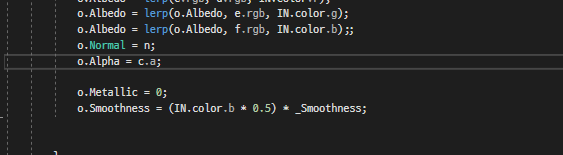 o.Albedo = lerp(o.Albedo, e.rgb, IN.color.g);