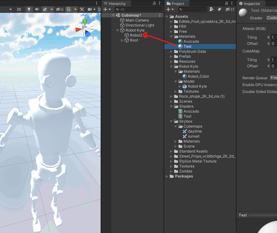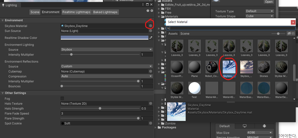 메터리얼을 스카이박스메터리얼에 넣어준다.