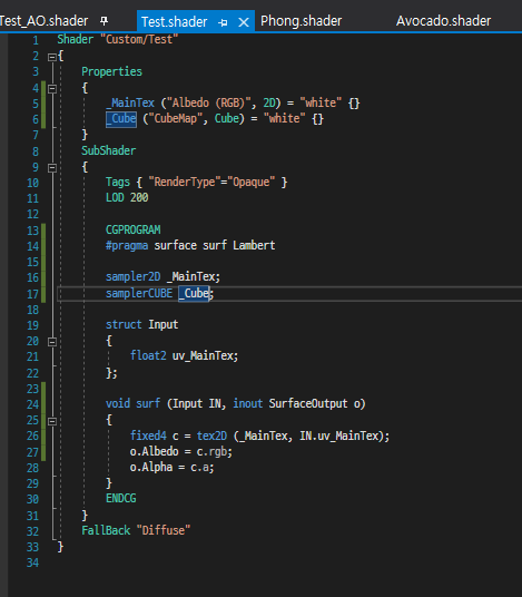 큐브맵을 받을수 있는 프로퍼티를 뚫는다 .