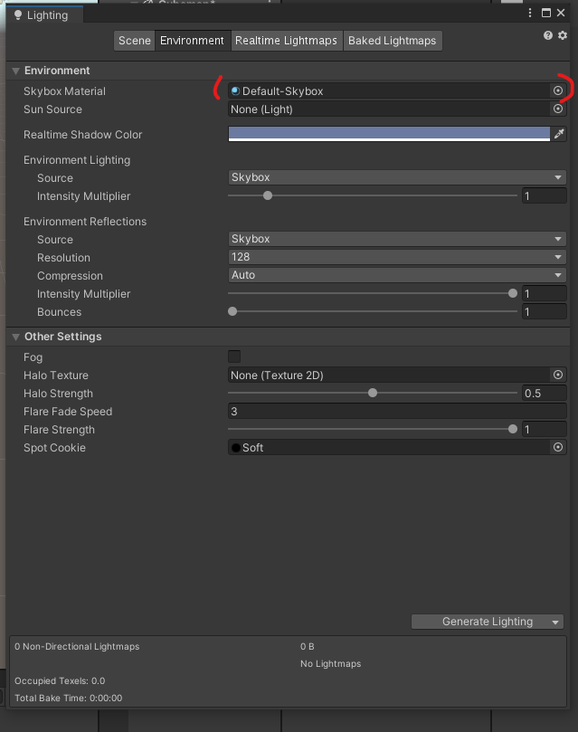 윈도우 - 렌더링 - 라이팅 세팅에 넣어야한다.