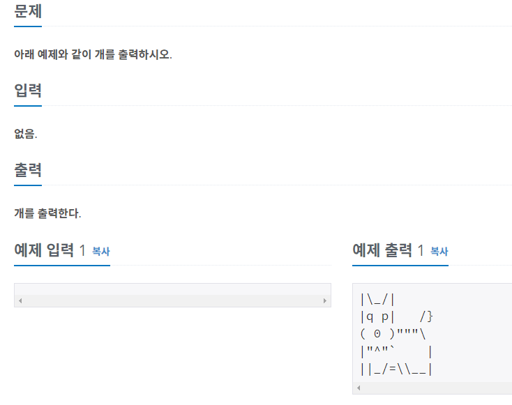 | 입출력 - 백준 10171 (고양이 모양 출력) (0) | 2021.09.12 |
